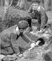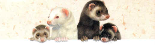 | About My Ferrets     I started small game hunting at the age of 18 using just an air rifle. I had been bitten by the rabbiting bug, and was not shooting enough to fulfil people's requests for them, so I got myself a ferret and a dozen purse nets. He was a tiny albino hob, he never had a name and worked like a dream. I got him from a little back street pet shop, that had many exotic pets (they even had a blue fox, and a bear), because I didn't know where else I could get one. He lived in a large rabbit hutch, in my friend's shed, and we took him hunting almost every Saturday for about 6 months, until he escaped and was never seen again, he was most probably killed by a local terrier. Over the next 7 years or so, I had albino ferrets left, right & centre, and was producing 1 litter a year to working homes. Then I met my wife, and the hunting was put on the back burner for a couple of years, and I had no ferrets because I had no need for them. Then I was considering getting myself another ferret, and had just about persuaded my wife to let me have one, when we had an emaciated albino kit posted through our letterbox about 11 o'clock at night. Luckily we had a letterbox cage, and our dog (Staffie cross) didn't get hold of it. This upset my wife, as you can imagine, and a resounding 'NO!' was the answer to me getting another ferret. The poor ferret went to my brother's neighbour, who already had some ferrets and was in the position to look after it. 2 years later (1998) I had the chance of getting a lovely sable jill 6 month old kit, the wife said no, but I had explained that she was a lovely little thing, nothing like the poor animal that was posted through our door. The jill came to visit, and the wife was impressed with how cute she was, but was still very unsure about us having it. About a week later, I was allowed the jill kit, under the condition that my wife didn't have to see her every time she stepped out of the back door. So I got her, put the cage away from the back door, and the wife used to watch through the window when I handled & played with her. This ferret I named Bandit, she was the first ferret I gave a name to, and within less than a month the wife was handling her, getting her out of the cage herself, and even playing with her. A local ferreter Chris Norcliffe, was looking for a mousing cat, and came to our house for a kitten, we got to talking about our different pets and I found out he had a hob called Peter, I bred a litter of 10 from Bandit & Peter, I kept 1 hob, Brutus and the smallest jill Bear and Chris took 1 hob as payment for stud.  Peter & Bandit's litter "5 week old ferret kits" Bear is 2nd in line from left. I had the chance of a 3.5lb. hob for free, and so went to pick him up, & ended up with his albino brother too. These were ex-show ferrets and had won many rosettes, but the lad wasn't looking after them, so his mother made him get rid. The large sable I named Smokey and I worked him as a liner (but without a line) and also as a stud ferret. His albino brother was given to a friend. My wife wouldn't touch Smokey because of his size, & his sabre-toothed-tiger like teeth (his canine teeth were so long, they were visible all the time, almost level with his jaw-line).  I had kept Brutus so I could get him snipped (vasectomised), but when the time came, I didn't have the money, so a friend, George Stevenson, bought him from me, got him snipped and re-named him Fat Dude. In the Summer of 2001, I was offered 3 ferrets, as the lad was working long hours and didn't have the time to look after them properly, when I went to collect them, 1 had already been sold, and so I got the remaining jill & hob. I kept the jill and named her Titch and the hob went to a friend from college. Her and her father also hunt, but she keeps her 2 hobs as pets. I have used Fat Dude to bring my jills out of season, until I got the chance of a snipped hob from Sheila Crompton of Bolton Ferret Rescue called Trevor, a large albino.  Peter died at the end of October 2002, and Chris turned up at my door, looking for a replacement working jill, and took Titch on 12th November 2002. At the end of February 2003, I acquired a jill to replace Titch, I have named her Jilly. Trevor is considered as my wife's, because she fell in love with him when Sheila brought him to our house, & he fell asleep on her lap. He's a bundle of mischief when left to roam the house, and he's a keen gardener. He was determined to uproot our large Yucca, with his persistent digging in its bucket. He did eventually kill the 6' Yucca. I haven't bred my ferrets since March 2000, I use Trevor to bring my jills out of season. All my ferrets are workers, although Trevor works at home, so my jills can be worked all year round. I have permission to ferret for rabbits on numerous farms around my home, and I also travel to other permission with them. I also have permission on 2 local golf courses, and a couple of the surrounding farms of 1 of them, but right next to it is a nature reserve so they will always have a problem. A local farm where I had permission to hunt, was bought by a family that wanted to start a plant nursery, so I enquired if I could still hunt the land, and was asked to remove them en-mass. I took my ferrets, lurcher and air rifle one Saturday & Sunday, and then again on the following Saturday & Sunday, and the landowner was picking them off with his shotgun from the living room window whenever he saw them in the garden. We amassed 49 rabbits over the 2 weekends, and I receive phone calls when a couple are spotted around the farm. I intended to show my ferrets in 2003, and hopefully promote them as loveable pets as well as a valuable asset for the countryside when used as a pest control method. Which is after all why they were originally brought to the UK around 2000 years ago. But I ended up judging shows instead, so the promoting could continue, but the rosettes had to wait. At the beginning of July 2003, I w
