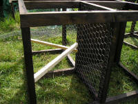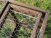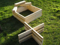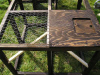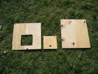 9x lengths at 18"  Take 4x lengths at 28" and then half lap them in the middle so they fit together as a cross. All will become apparent. Once this is done, you can begin to fit the pieces together. Joining the half-lapped pieces together and then take 2x 30" lengths and 2x 28" lengths and make a square frame that measures 30x30"  Next step is to assemble the crosses into the frames, make sure to centre and square them up before nailing together.  You should now be left with (if you are making one Larsen, I am making three) 2x frames and 9x lengths at 18". The next step is to fit the two frames together with the pieces of 18" lengths.  The corners and middle ones don't really matter which way round they go, but I like to keep mine uniform so that the overall look of the trap is good. I drill a pilot hole through the frame and then use a three-inch screw to fasten the post onto the frame. The middle post is crucial to its positioning; it determines which two halves of the trap will be.   Once you have your posts fitted to one frame then you can do the exact same and fit the other frame.  Once you get to this stage, it is wise to fire a pin into each joint whilst squaring the whole thing up, this will also help to stop the posts from twisting and also keep the frame square. Next job to do is to drill holes for the pivot bar for the trap doors. I position this hole 3, 3/4" from the edge of the frame and centre in the length of timber. There are 4 holes to drill and these holes are the same size as the bar, which is 1/4" or 6mm.   It’s easier to do this now before the wood is treated so that you can see your pencil marks. I am using 6mm threaded bar, as this tends to hold in the frame without having to fasten it on.  Next, I tend to treat the frame with whatever preservative that I have got spare. Best to use a dark colour so that the trap doesn't stick out like a sore thumb.  Whilst your frame is soaking up the treatment, you have time now to get on with the service lid and other things. You will need to acquire some ¼" plywood and cut this into 1x length of 15x15" 1x length of 15x17" 1x length 7x7" and 1x length 15x3" Take the piece 15x15 and cut a hole 6" square 2" from the edge and centre. (You will see in the photo) A tip is mark the square on the board and then drill out the corners first with a large forstner bit, 30mm should do, then cut in-between the holes to finish off the square. This has the advantage of leaving nice rounded corners. Using sand paper get rid of any rough edges that you might ladder your tights on. In the 7x7” piece drill a finger hole, again 30mm should do.  Next, you need to take 2x lengths of frame timber 1x1¾" and cut them to 13" long. Next is a bit tricky if you don't have a table saw, but can be done with a hammer and chisel if necessary. You need to rabbit out the edges of the timber just over the depth of the plywood and about ½" wide. This is to allow the door to slide once in place.  The next step is to assemble these pieces together. So take your 15x15” piece of ply with the hole cut in it, and your sliding lid 7x7” and also the two pieces of rebated wood. You need to fix the pieces of rebated wood to the plywood board as shown in this photo, the sliders are positioned 2" from the edge. (You will see when building how this all fits together)  Next job is to fit the piece of ply 15x17” into place as shown in this photo.  Next you need to place your wire (you can either use wire netting with a 1" mesh or if you can afford it weld mesh with 1" mesh, I haven’t caught enough moles to be able to afford weld mesh so I am using wire netting) in between the two sections of trap, also now is the time to fit the perches. You don’t need fixed perches, you can use hazel branches poked through the wire netting, but it does make a mess of the wire netting eventually. Note I do not treat the perches with anything (your call bird does not need to be sitting on perches that have been treated with anything that could cause their feet to react badly)  Next place your wire over one half of the call bird compartment and then fit the service lid (do not forget to place the sliding door into the runners before you screw the lid down)  Now you can go ahead, wire netting up the sides, and bottom.  Next, you need to make the trap doors. I make these from slightly thinner wood 2x¾"; this is to make the doors a bit lighter in weight. They measure 12½x11½" overall. Once you have nailed these together you need to then drill holes for the threaded bar to pass through, but these holes will be slightly bigger in diameter than the bar. The holes are placed 2" from the edge.  Once you have drilled the holes, treat the wood and fit your wire. Next you need to fit a spring to each door, best way is poke the threaded bar through the hole in the door and then place the spring over the bar and fasten the spring to the door with staples (wire staples) Next, you need to fit the doors in place hammer the bar through the frame and locate the door onto the bar and pass the bar through each hole in turn. Once the door is fitted, you need to staple the other part of the spring onto the frame.  Once this is done with both doors, you can then place your piece of plywood 15x3” onto the frame to stop the doors from springing right open.  Next get hold of some flexible wire and wire the sliding door to the cage in some fashion, so that it cannot slide open, only you can undo the wire for operation, not the call bird. Also I use a washed out dog food tin with a couple of holes knocked through it and wired onto the inside of the call bird section for a drinking solution for the call bird.  To set the trap get some dowel cut to length and then in half as shown in the picture.  You now have your working Larsen trap. But remember RULES apply when trapping, make sure that your call bird has a fresh supply of water each day and also fresh clean food everyday. REMEMBER TO CHECK YOUR TRAPS E